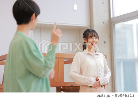 身振りで指示を出すボーカルトレーナー女性と生徒_1
