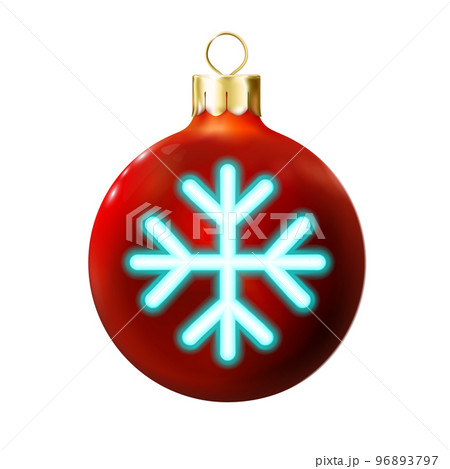 Red Christmas ball decorated blue snowflake neon lamp. Holiday icon isolated. Merry xmas, New year design png decoration.
