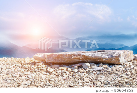 石頭地面與綿延起伏的山脈自然景觀天際線。