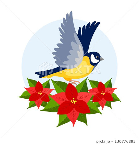 Titmouse with Christmas Flower