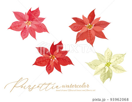 クリスマスフラワー、ポインセチアの水彩風イラスト素材
