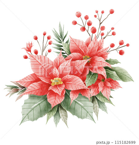 Watercolor Hand drawn illustration Christmas compositions with poinsettia flowers bouquet for holiday invitation, card design clipart print new year decor for print, label, invitation design