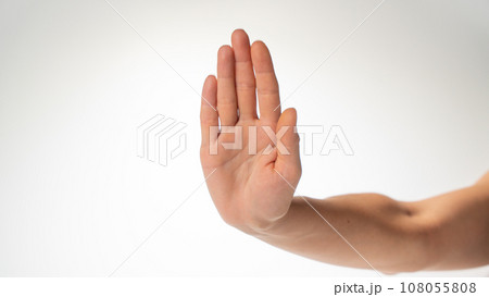 woman's hand with forearm gesture stop on a white background