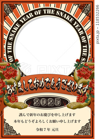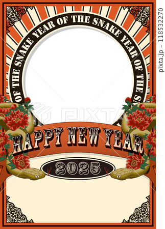 2025フォトフレーム年賀状「アートポスター風デザイン」ハッピーニューイヤー 英語添え書き付
