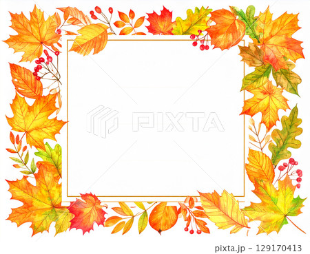 秋の紅葉した葉のフレーム画像コピースペースあり