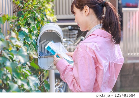 郵便ポストに手紙を投函する女性・ビジネスウーマン