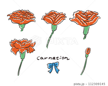 デコレーション カーネーションのゆるい手描き風イラストセット