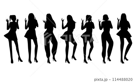 7人の女性が横に並んで踊るシルエット_スポットライト