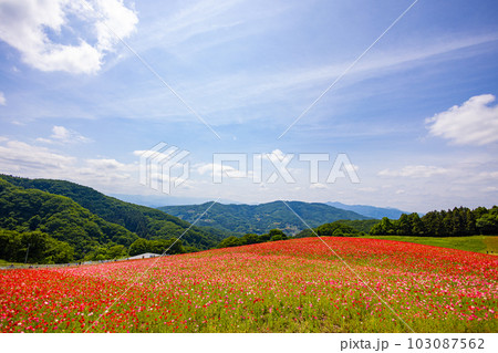 秩父天空のポピーに咲くポピーの花