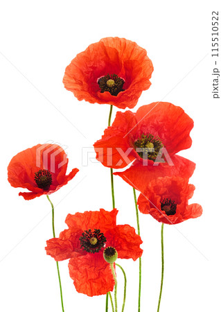 Vibrant Red Poppies Isolated on White