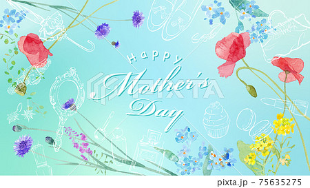 母の日のバナー。春の野原のお花のフレームデザイン。水彩イラストのトレースベクター。。
