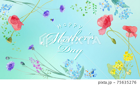 母の日バナー。春の野原のお花のフレームデザイン。水彩イラストのトレースベクター。