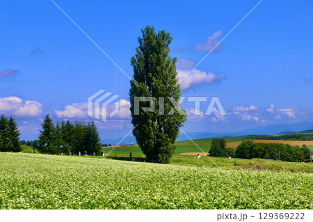 北海道美瑛_ケンとメリーの木と蕎麦畑の風景