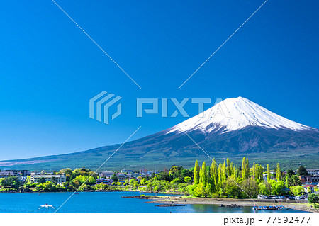 《山梨県》初夏の富士山・河口湖湖畔の眺め