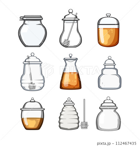 honey jar set cartoon vector illustration