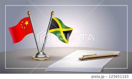 Small national flag of China and Jamaica flag Relation, Template Vector Illustration