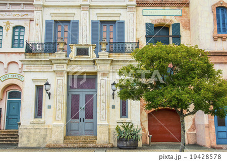 晴天の和歌山マリーシティ内にあるテーマパークポルトヨーロッパの街並み