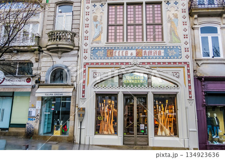 ポルトガル ポルト旧市街リベイラ地区のアズレージョ装飾の歴史的建物
