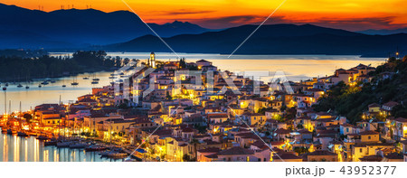 Sunset on Poros island in Aegean sea, Greece