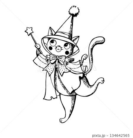 Halloween Wizard Cat in Robe and Hat