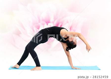 Full length Woman practicing yoga Kapotasana, Pigeon Pose