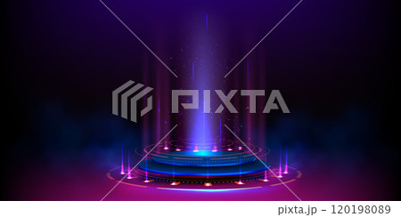 Tech hologram light podium with neon glow