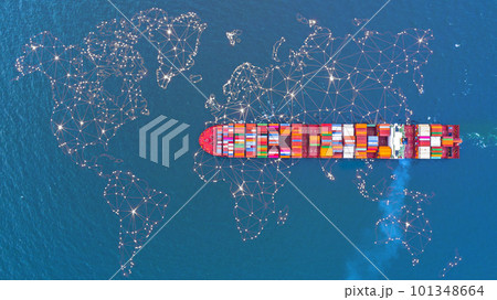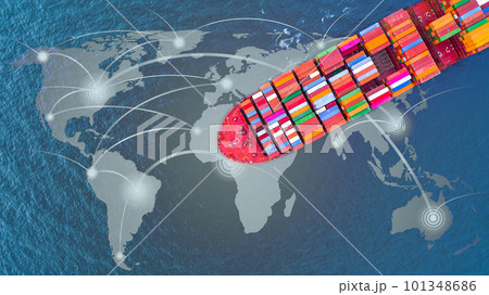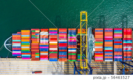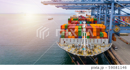 Container ship carrying container for business freight shipping import and export, Aerial view container ship arriving in commercial port.