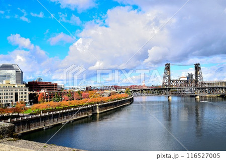 Portland city at autumn, Steel Bridge.