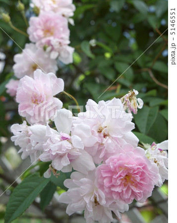 たくさんの花を咲かせる淡いピンクのバラ ポールズ・ヒマラヤン・ムスク