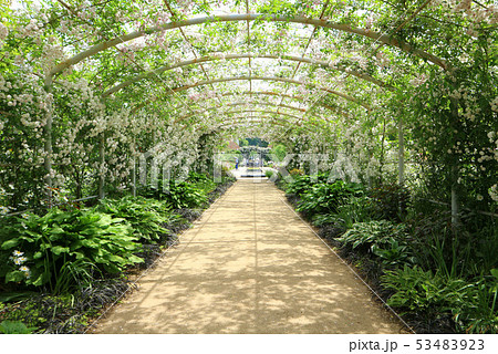 東武トレジャーガーデンのバラのアーチ。ポールズ・ヒマラヤン・ムスク・ランブラー(5月)群馬県館林市