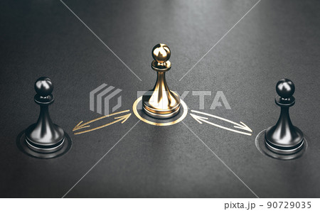 Chess pieces on the board. The concept of planning, decision-making, and strategy. 3D rendering