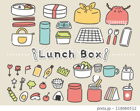 線画のゆるかわお弁当・ランチアイテム