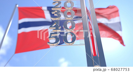 Minus 40 degrees centigrade on a thermometer measuring near flag of Norway. Very cold weather forecast related 3D rendering