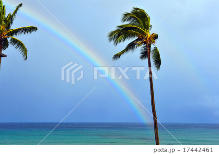 Rainbow,Ke'e Beach,Kauai,Hawaii,虹のケエビーチ、カウアイ島、ハワイ