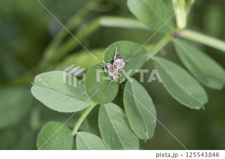 クモの糸にかかったウリハムシ
