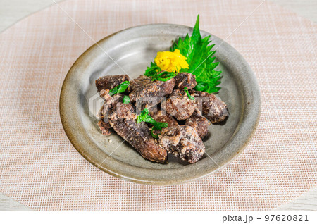 和食器に盛ったまぐろの唐揚げ