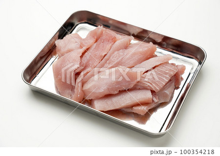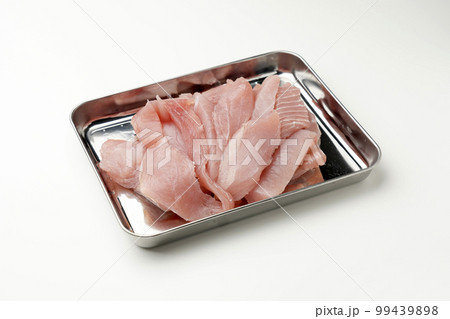 白い背景度のカットしたマグロのアラ