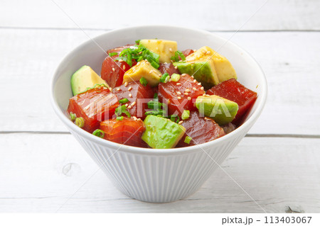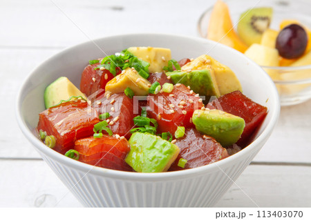 マグロ漬けサラダ丼/Tuna and avocado salad bowl