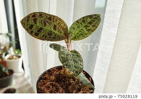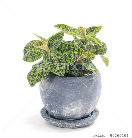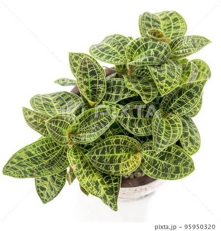 ジュエルオーキッド(マコデス・ペトラ)の鉢植え【白背景】