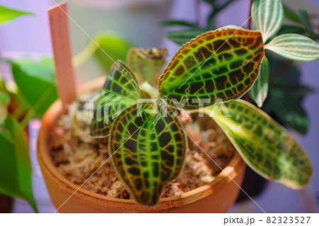 ジュエルオーキッド・マコデスサンデリアーナの横向きの写真