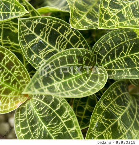 ジュエルオーキッド(マコデス・ペトラ)の葉【白背景】