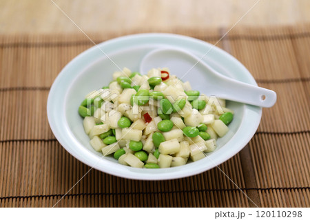 中国家庭料理・茭白豆角炒毛豆(ジャオパイとインゲンの中華炒め)