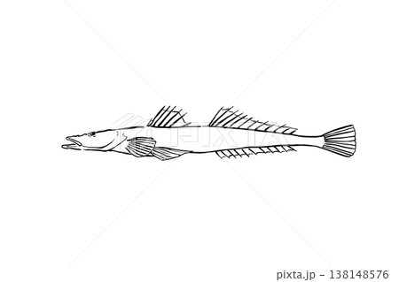 マゴチのイラスト 海の魚 筆ペン線画 横向き