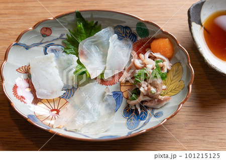 マゴチの刺身、マゴチの胃袋・紅葉おろしポン酢