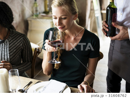 Woman Tasting Red Wine in a Classy Restaurant