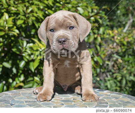 An English Mastiff puppy in an urban environment. A beautiful powerful breed of companion dogs