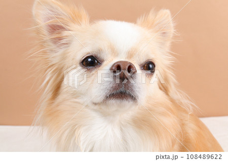 クリーム色のチワワの顔アップ写真