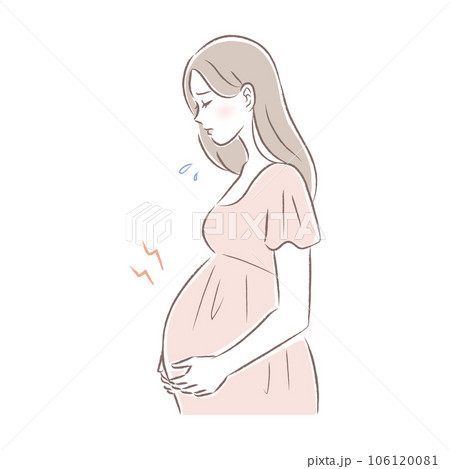 陣痛・妊娠後期のトラブルに悩む女性のイラスト