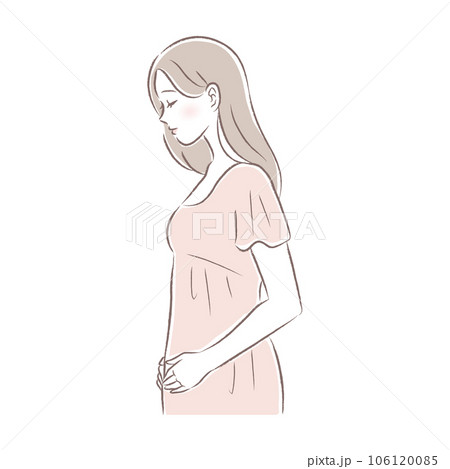 妊娠超初期・子宮あたりのお腹に手をあてる女性のイラスト