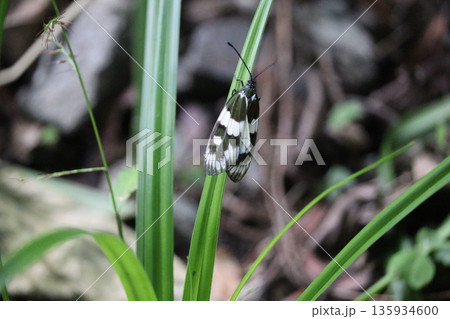 地面に止まるマダラガ科シロシタホタルガ